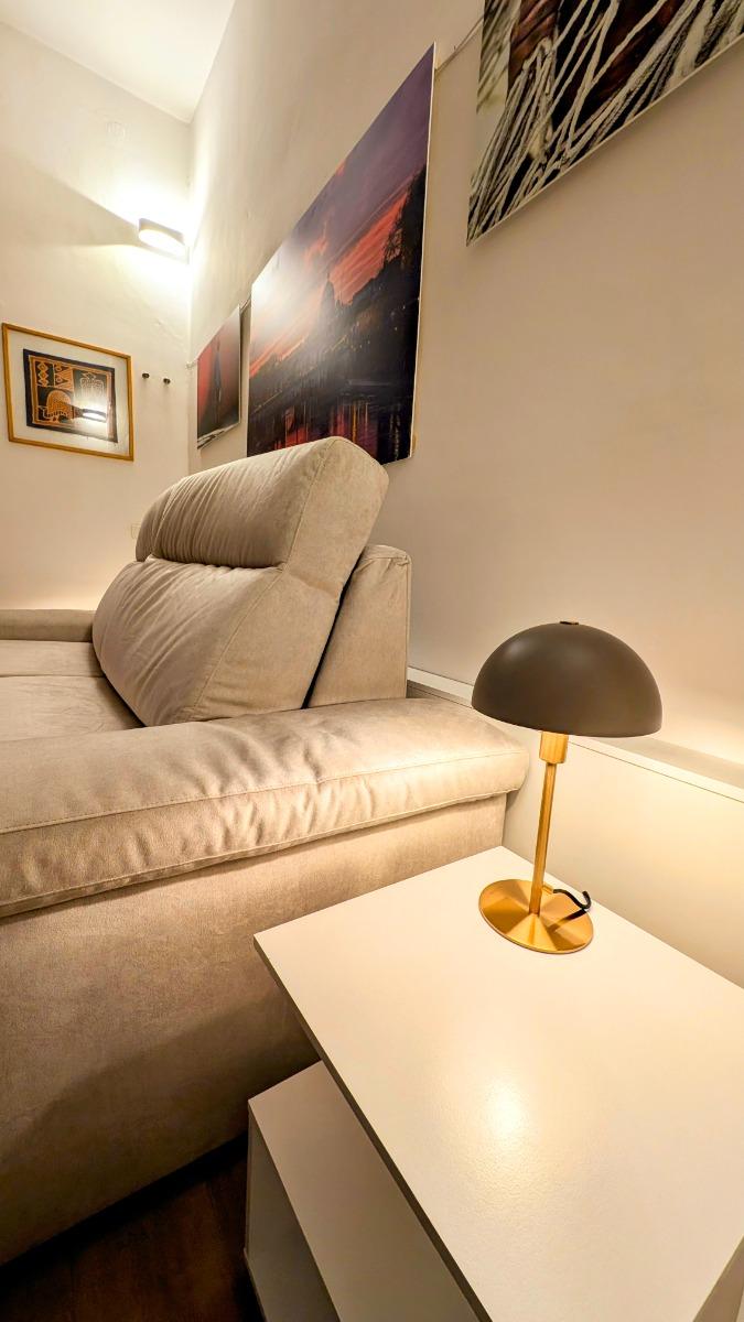 Il loft presenta una spaziosa zona living, arredata con gusto e sobrietà. L’ambiente è dominato da un comodo divano-letto, che all’occorrenza può ospitare due persone, rendendo lo spazio versatile e adatto sia a soggiorni brevi che prolungati. Un armadio capiente è stato attentamente inserito nel contesto, offrendo ampio spazio per riporre abiti e oggetti personali.
