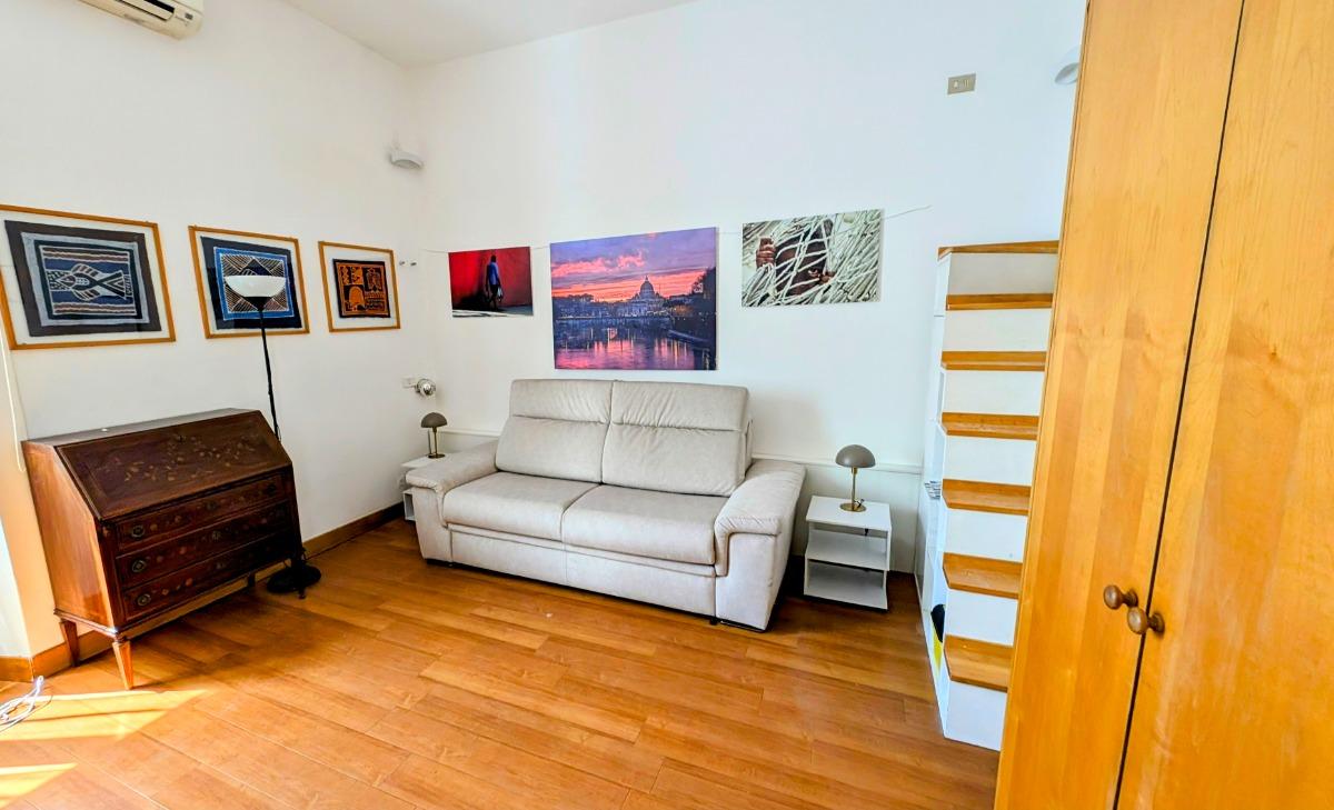 Proponiamo in locazione un raffinato loft situato al quarto piano di un palazzo storico nel cuore del vivace quartiere di Trastevere, Roma. Il palazzo, dotato di ascensore, conserva il fascino dell'architettura tradizionale romana, combinato con la comodità e la funzionalità moderne, offrendo un ambiente esclusivo per chi cerca un soggiorno tranquillo e sofisticato nella Città Eterna.