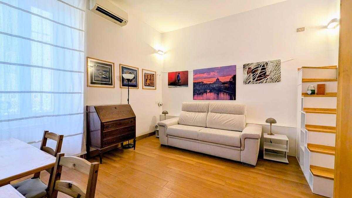 L’appartamento, caratterizzato da un’atmosfera accogliente e silenziosa, si affaccia su una chiostrina interna che garantisce quiete e riservatezza, elementi rari da trovare nel centro di Roma. La posizione interna dell'immobile permette di godere di un'ampia luminosità naturale durante il giorno, pur rimanendo protetti dal trambusto della città, creando così un'oasi di pace in uno dei quartieri più vivaci e storicamente ricchi di Roma.